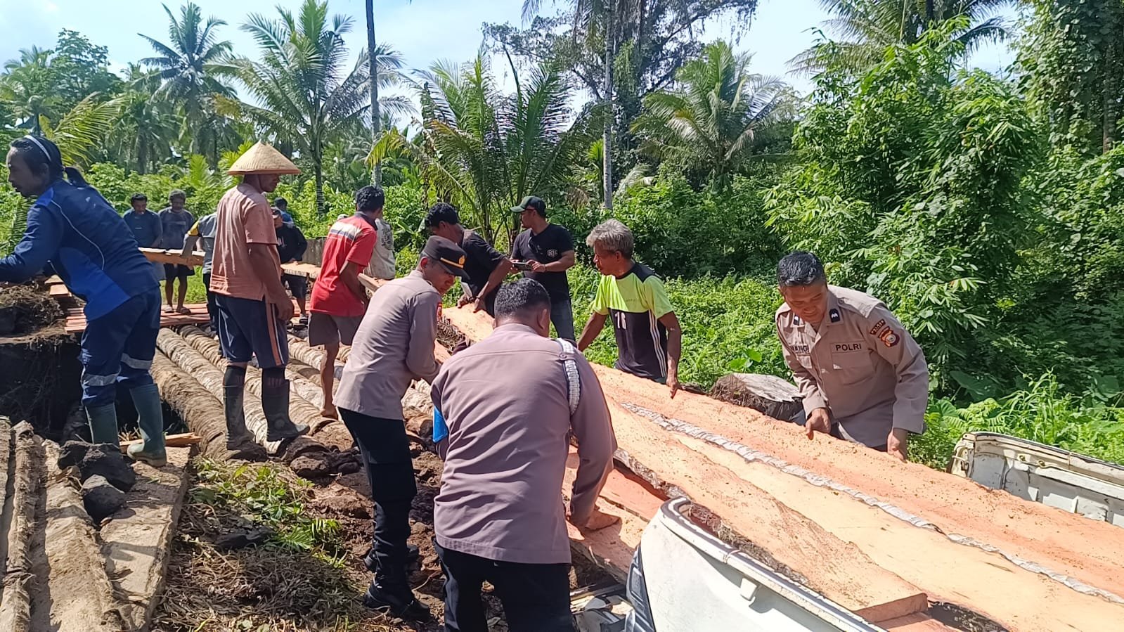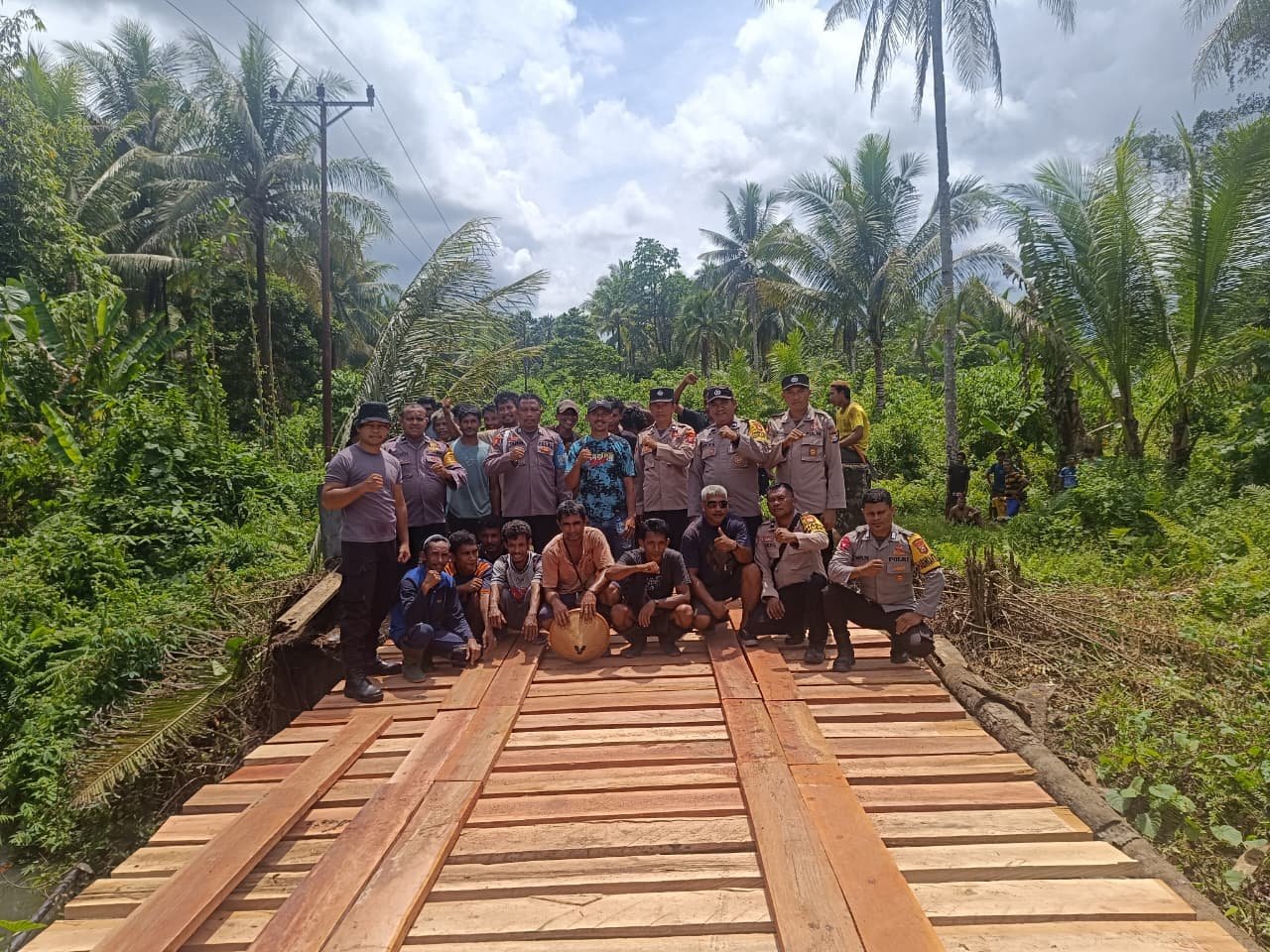Menanggapi kondisi jembatan tersebut, Polsek bekerja sama warga Desa Takimo langsung turun ke lokasi untuk melakukan perbaikan jembatan yang rusak,