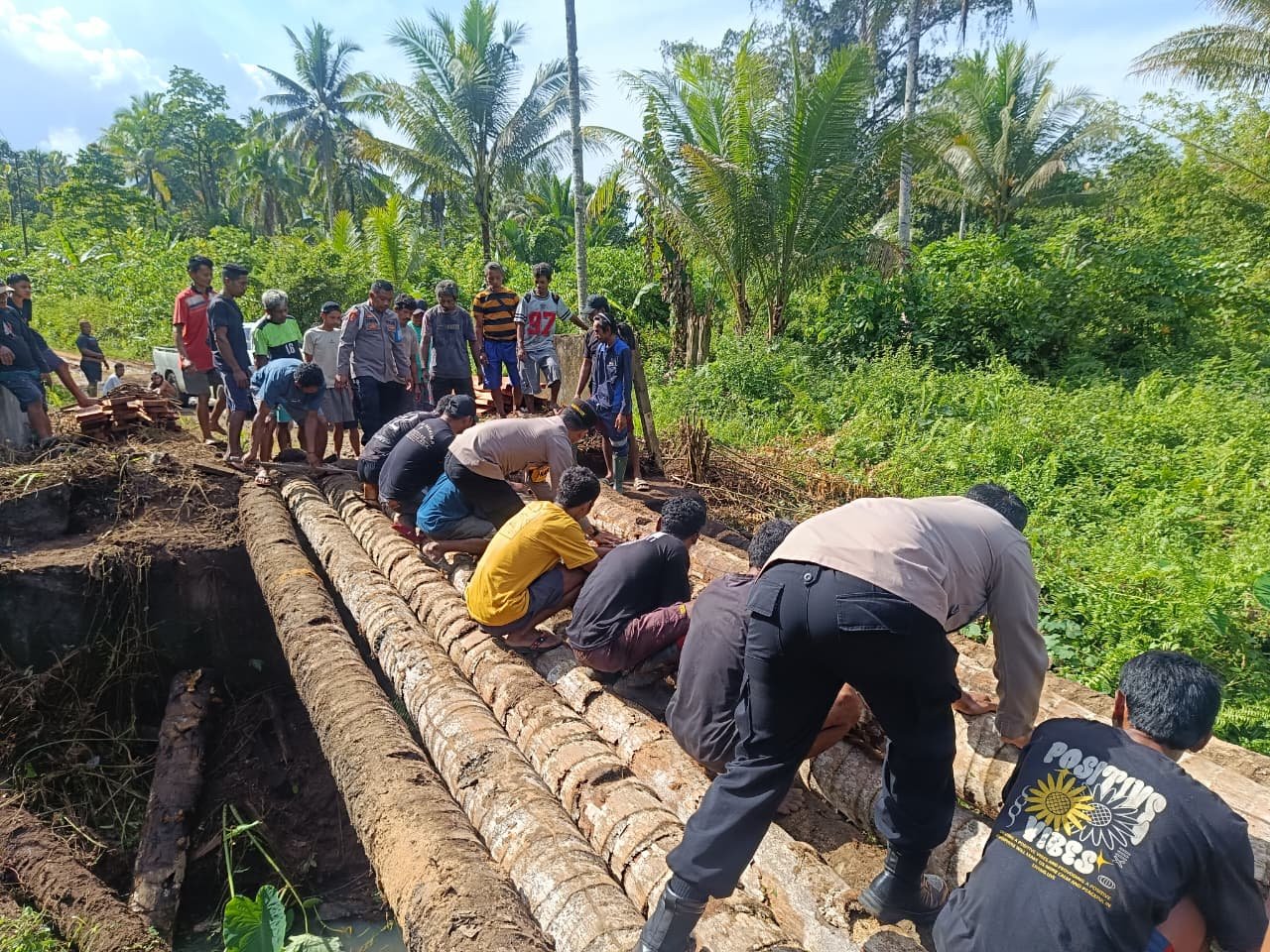 Menanggapi kondisi jembatan tersebut, Polsek bekerja sama warga Desa Takimo langsung turun ke lokasi untuk melakukan perbaikan jembatan yang rusak,
