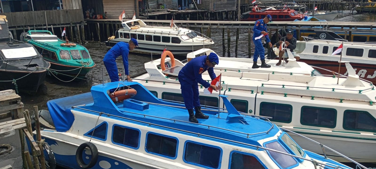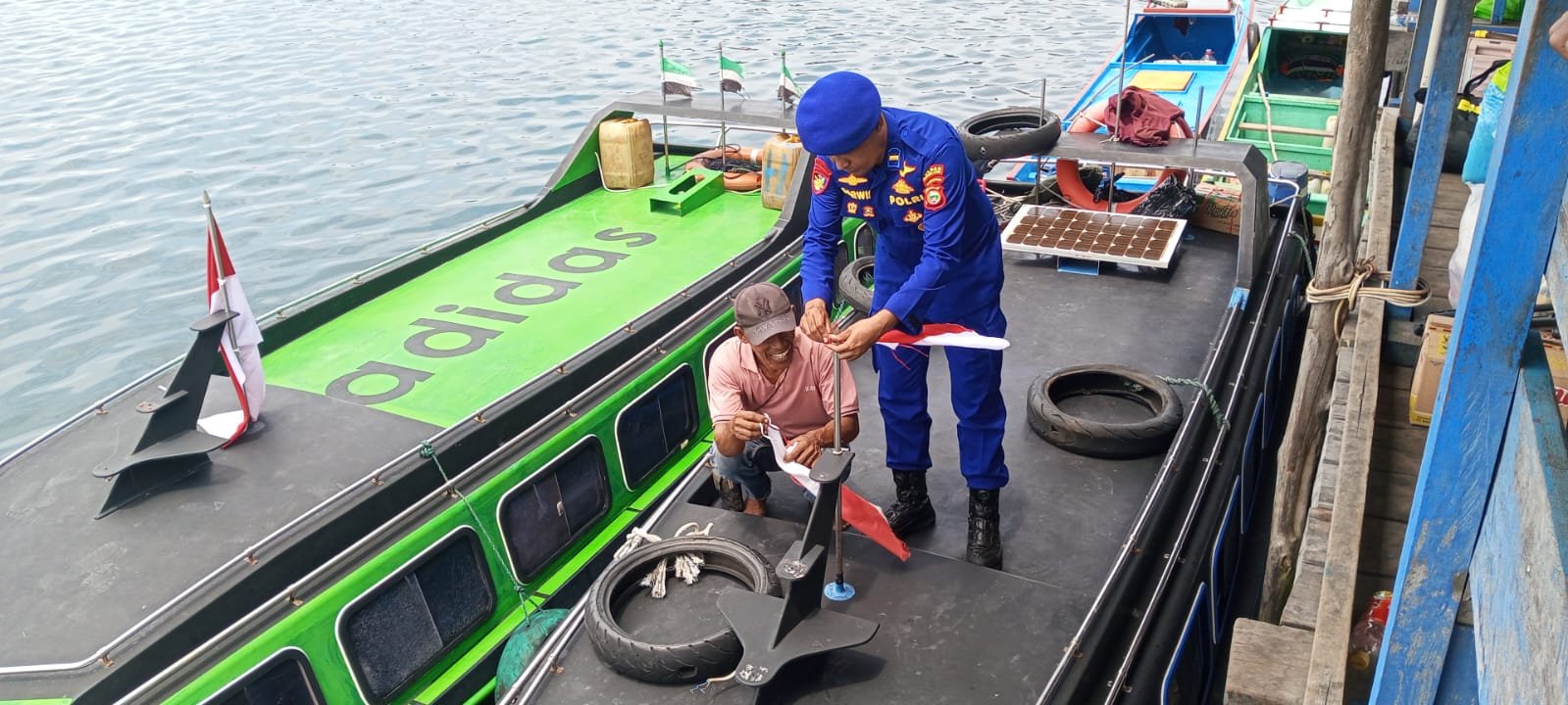 Edukasi selesai di lanjutkan dengan Pembagian dan pemasangan bendera merah putih di Speedboat yang berada di pelabuhan Tobelo,
