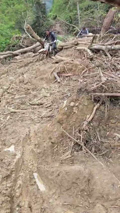 Sepanjang perjalanan, sejumlah titik jalan tertutup material tanah dan lumpur. Bahkan, beberapa akses jalan antar desa dilaporkan putus total. Kondisi ini membuat kendaraan roda empat tidak dapat melintas, sementara kendaraan roda dua harus berjibaku melewati medan yang berat dan berbahaya. Curah hujan yang masih tinggi semakin memperparah kondisi jalur yang dilalui.