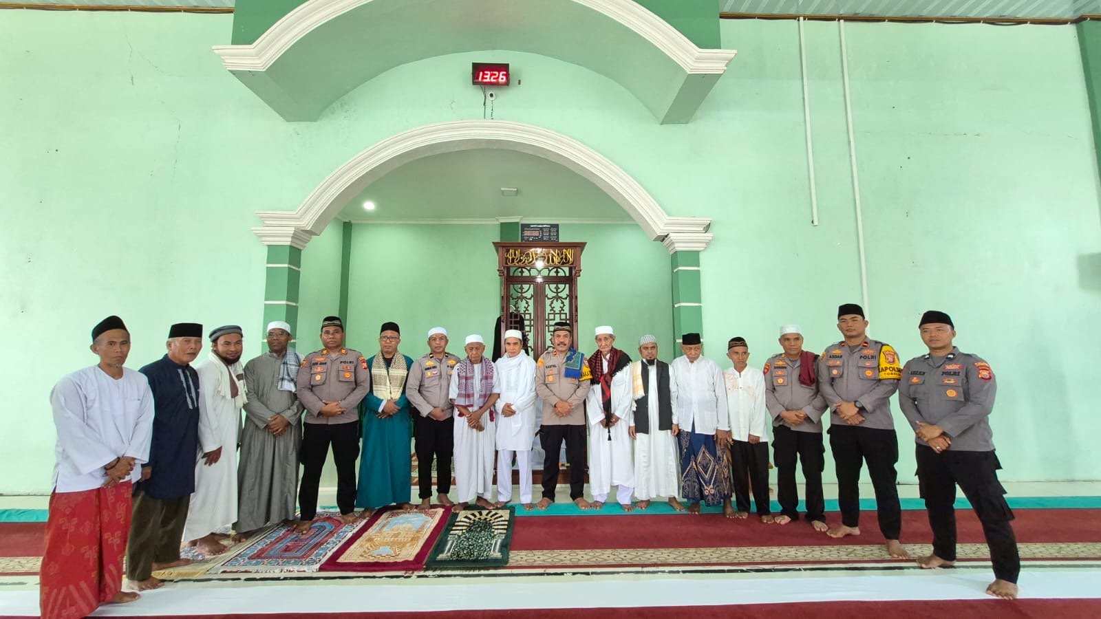 Seusai Sholat Jumat Wakapolres Kompol Saiful Egal, memberi pesan pesan kamtibmas kepada jamaah Sholat Jumat di Masjid Nurul Yaqin, Desa Gosoma.