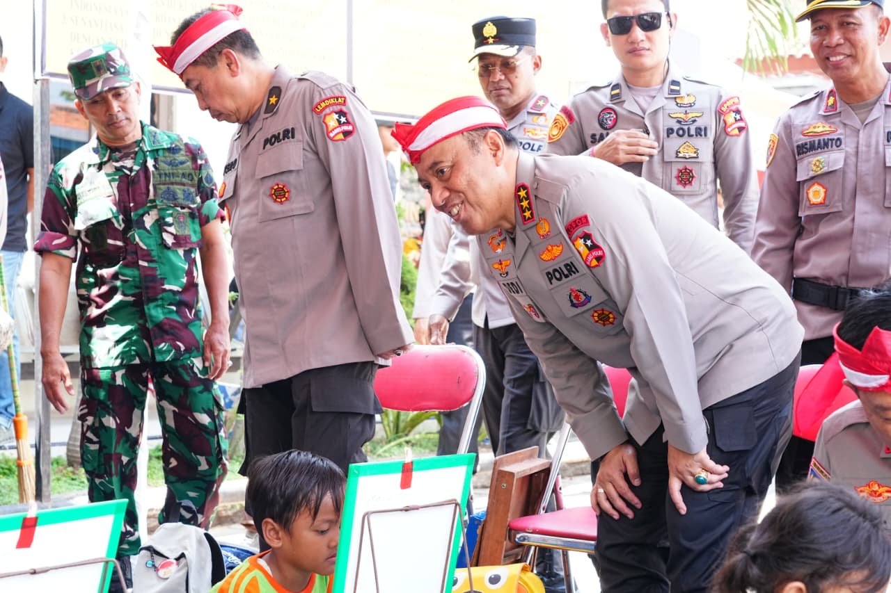 “Wah, warnanya bagus-bagus sekali! Ini gambar apa?” tanya Wakapolri sambil menyapa seorang peserta lomba mewarnai dengan lembut. Dengan polosnya, seorang balita menjawab, “Gambar ibu polisi.” Saat Wakapolri bertanya tentang cita-citanya, dengan semangat dan suara lantang, anak tersebut bercita-cita ingin menjadi polisi. Interaksi hangat ini menjadi
