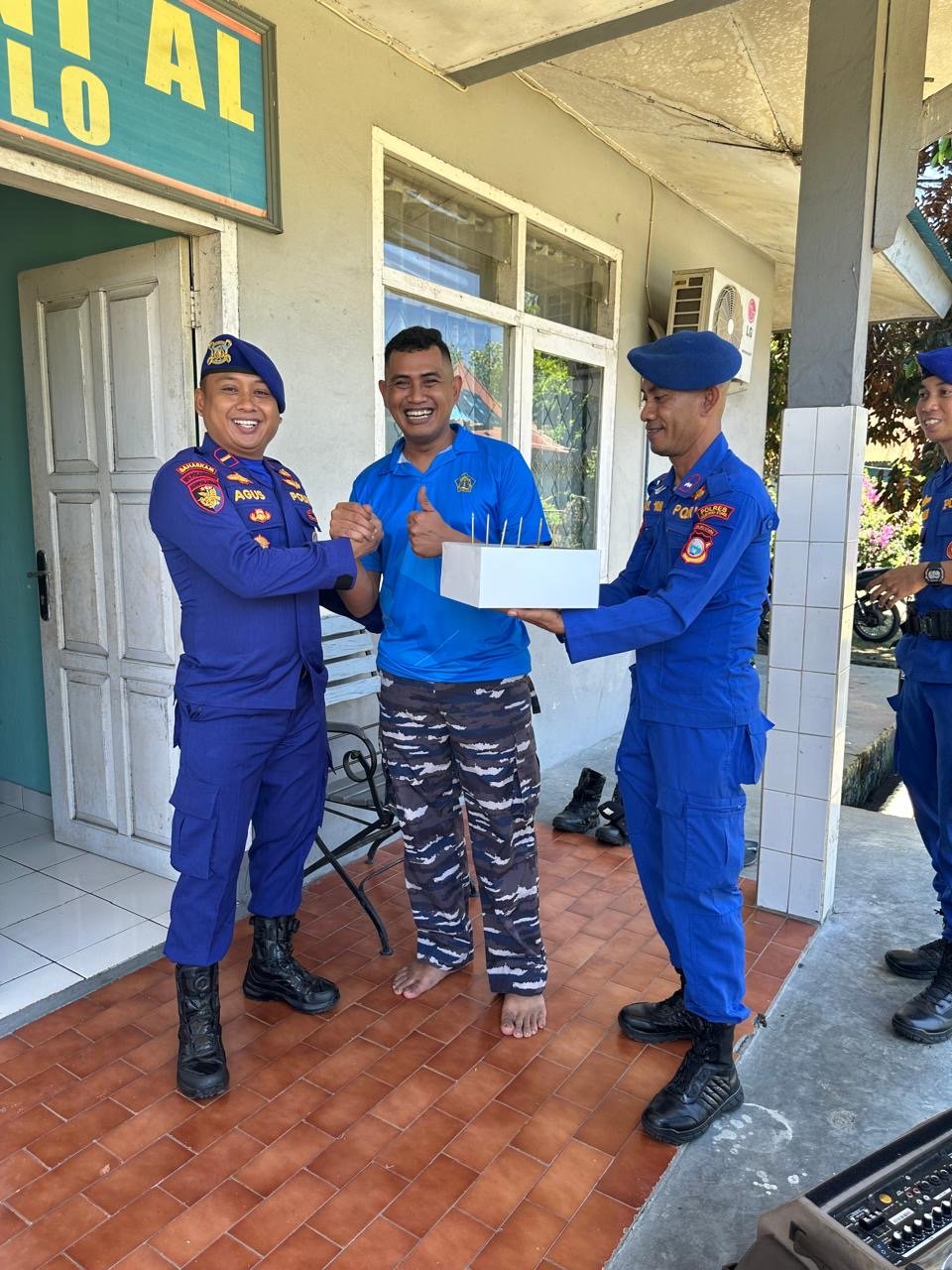 Kapolres Halmahera Utara AKBP Erlichson Pasaribu S.H.,S.I.K, melalui Kasat Polairud Ipda Agus Dwi Sunarto, S.H, mengungkapkan, meski kejutan Kue ulang tahun baru dilakukan saat ini namun tidak mengurangi penghargaan dan rasa syukur anggota Satpolairud yang ikut merayakan HUT TNI AL ke 80 Tahun,”Tuturnya”,