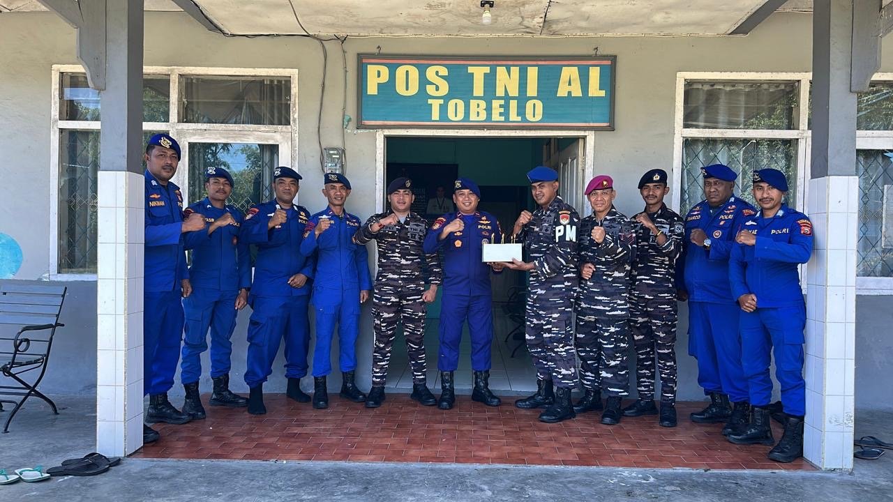 HUMAS POLRES HALUT – Sat Polairud Polres Halmahera Utara memberikan kejutan khusus berupa pemberian Kue Ulang Tahun kepada anggota TNI yang bertugas di Pos TNI AL Tobelo, Kejutan tersebut sebagai ucapan selamat ulang tahun TNI AL ke – 80 Tahun.